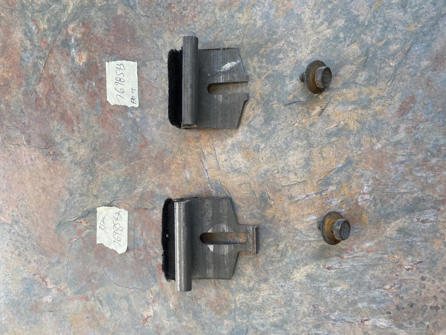 Mint originals removed from a 1969 Camaro over 30 years ago and properly stored. Front #7698543 and rear #7698542. The fuzzy material is perfect. Comes with the two mounting screws. $55 includes shipping. PayPal friends please.