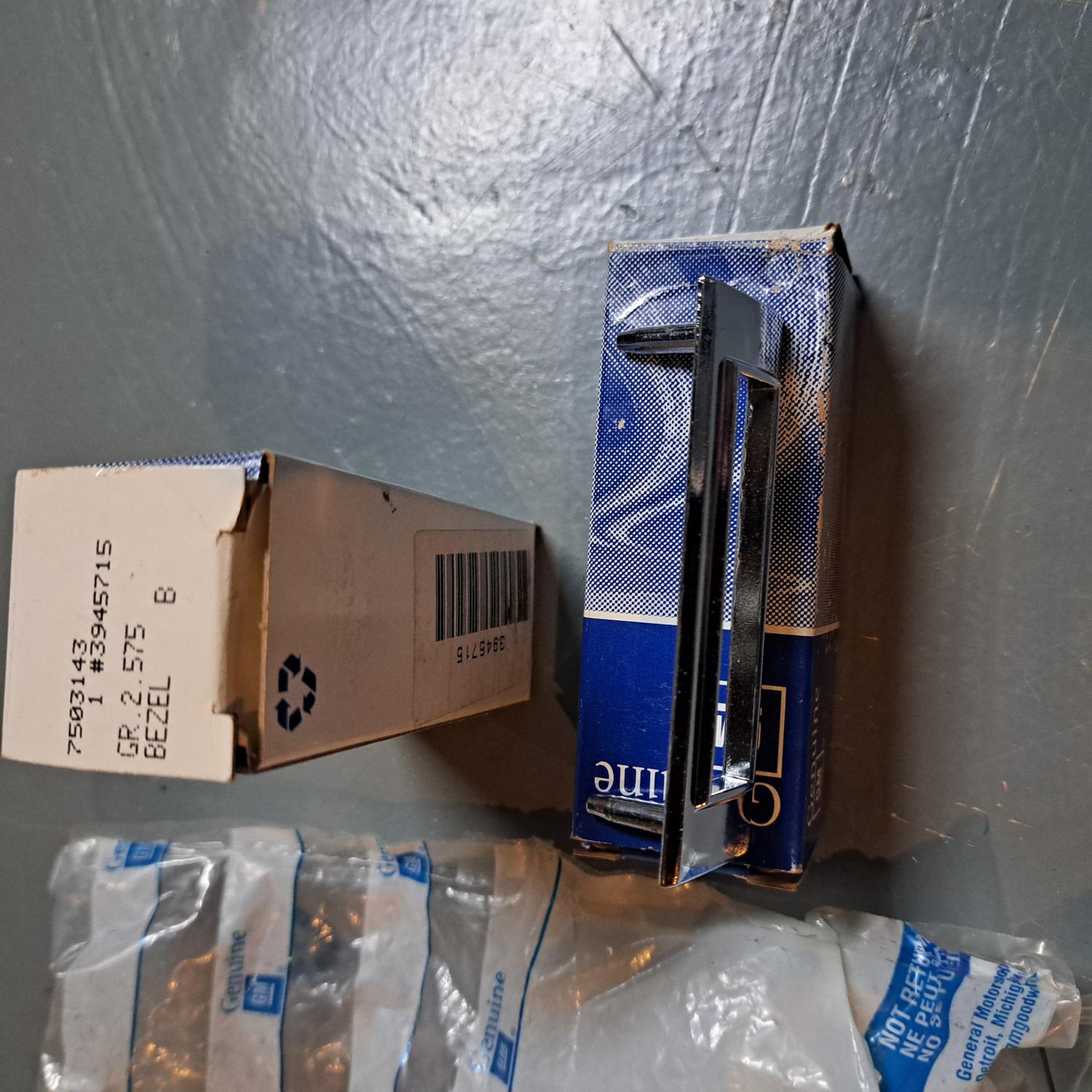1969 camaro GM nos front and rear marker lights with 2 front bezels. $260 US for all plus shipping from Canada. Thanks for looking.