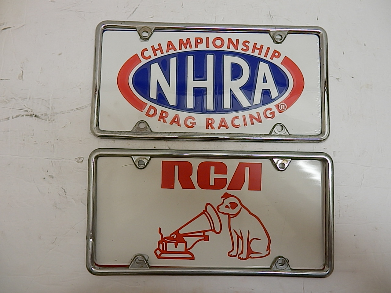 The Vintage Cal Custom license plate frames are NOT for sale, and the RCA plate is not for sale, the NHRA plate is for sale with the NHRA items I have for sale in another thread. I thought I would share, RCA had a plant in the Lancaster PA area, I believe it closed down back in the 70's, and a friends mother worked there & they gave the employee's these plates, the edges are embossed, so it is a strong plate, I struggle to leave it alone or have another logo stencil made such as the HUGGER 69 Camaro plate.