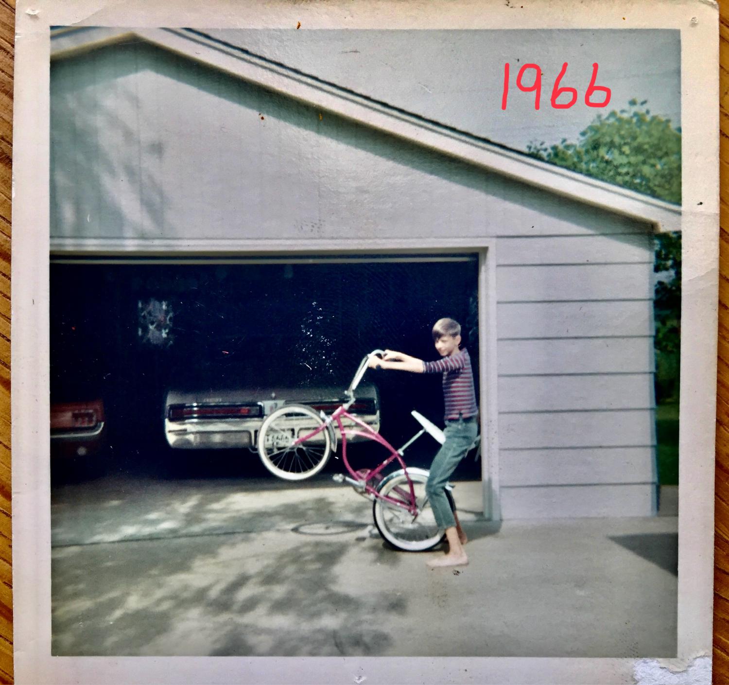My awesome Father, RIP, was a professional pilot based out of our hometown Springfield, Illinois in the late 50’s and through the 70’s. Back then it was called Capital Aviation and I got my first job out of high school working in the parts department. This was 1972. About 1966 my parents needed a new car, so Dad asked one of his good friends at the airport Bill Russell which managed the Hertz rental cars what he might have in a good used, not abused rental car. Today my mind vividly remembers (I was 12 years old) when Dad took me to meet with Bill on the weekend to see what was available. Inside one of the big hangers over in a dark corner were two Black/Gold Striped GT350H cars. Even as a kid those cars looked menacing. Hell I’d never seen anything like that type of car before. Yes, they had been pulled from the rental fleet and Bill informed my Dad that they may be available for purchase in the future. Well we know what happens here. Obviously Dad thought they were cool but my parents needed a family car, so a purchase was made of a Mustang Coupe in the cool emberglo color. Imagine if we only knew. Not one, but two sitting there for the taking. The G.T.350 H Capital Airport My Dad (in the light blue coat) getting ready to fly Illinois Senator Dirksen in 1967. Me on my ‘66 Schwinn Stingray with Moms Buick Wildcat and Dads Mustang.