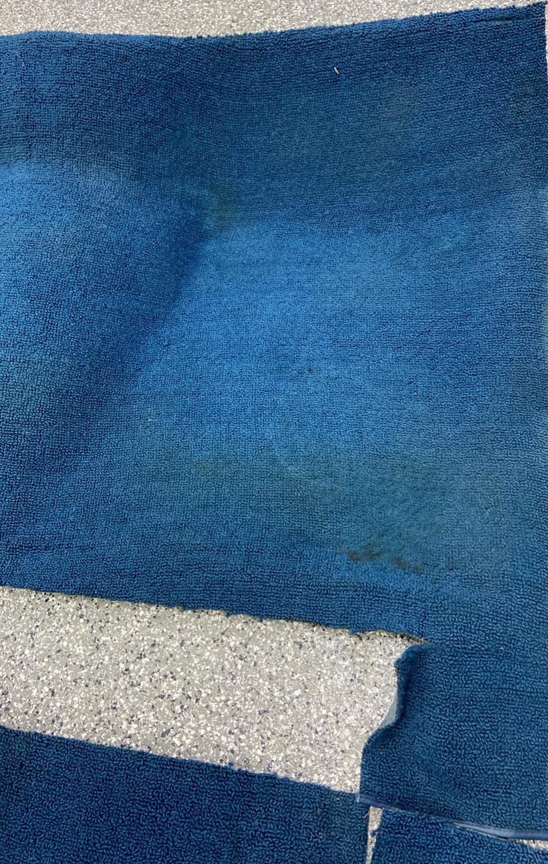 Assembly line blue carpet that was taken off a low mile 1970 Malibu survivor which still has nice insulation on the back side, high beam switch grommet and original dated 2 9 70 tag (February 9 1970). Application is an automatic on the column bench seat set up. Has a little fading in some locations and one spot is worn out just behind the drivers side seat belt retractor location, other wise over all condition is excellent.