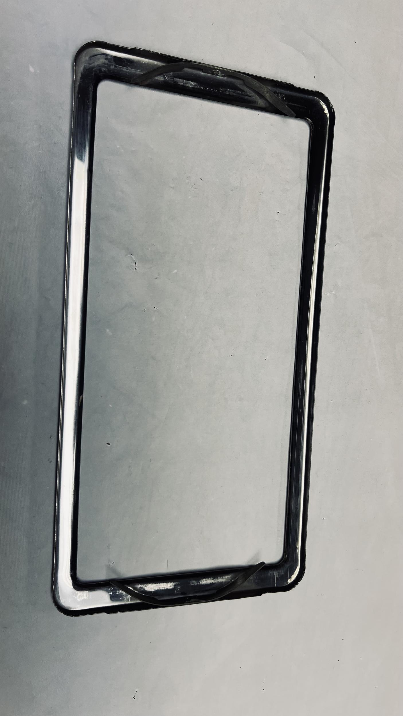 1963-1975 GM Corvette Stainless Steel License Plate Surround Frame 3797485 is the part number. This is used but in really nice shape. Has the patent numbers on the spring clips. Has two “small” indents likely from a screwdriver putting the plate screws on. $175 shipped.