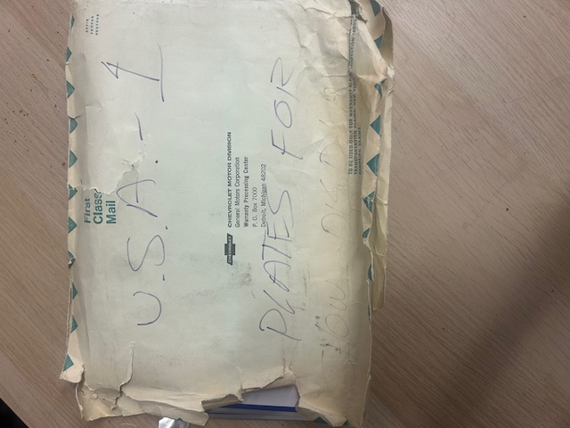 8 nos plates sent to a dealer .The envelope is from GM. All 8 plates and the envelope 800.00 shipped lower 48.