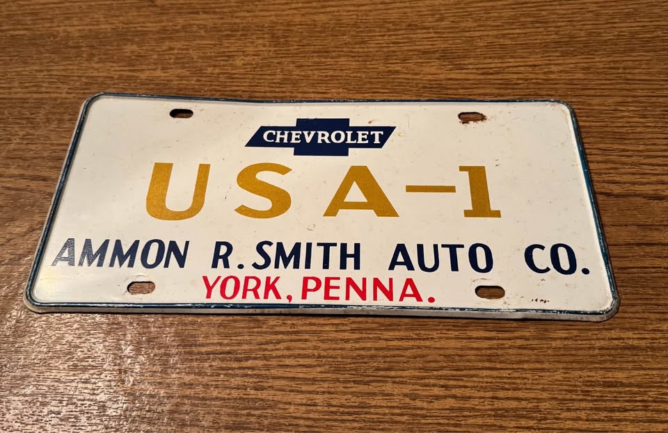 Early 60's Ammon R. Smith USA-1 License Plate. Good, used condition. Harder to find this early version with USA-1 than the common "The Old Reliable" plates. Asking $175 Shipped.
