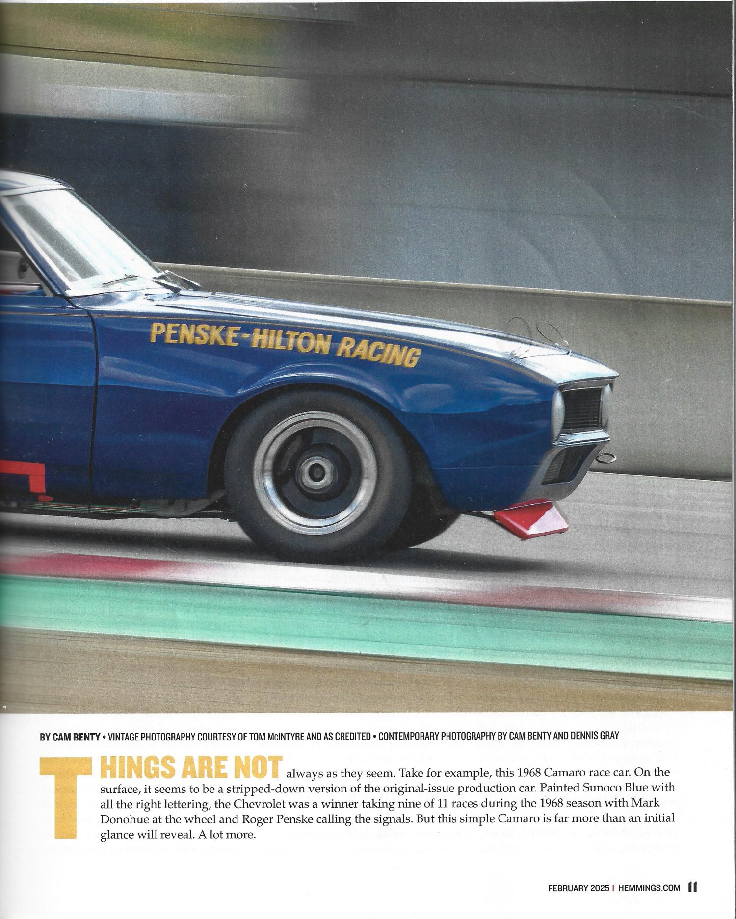 This is a 6-page article by Cam Benty with much help by our member Jon Mello a Trans Am historian with many decades of research and Tom McIntyre owner of the Penske Team 1968 #6 Trans-Am Camaro. Kudos to all involved!