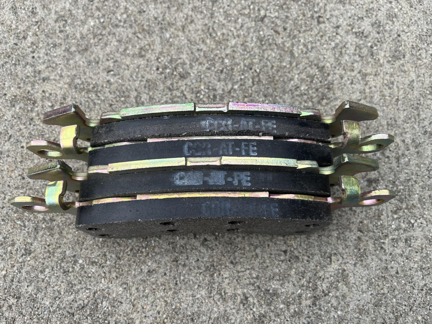 I have the below pictured set of new old stock after market brake pads that look similar to the GM originals, i.e. organic / semi metallic pads and gold iridite backing plate with no shims and no wear indicators, riveted. The "next best thing" appearance-wise anyway, to NOS Delco IMHO. Better than the currently available black backed and glued / bonded pads. See photos please. These pads also fit nearly every early GM single piston caliper of this era - lots of applications of course. This is a set of four pads as shown, enough for two calipers / one car. Also see my other ad for the original rebuilt 69 Camaro only calipers - 5463633 633 - 68 - 74 Nova too. I may have some cores listed / available too. Chevelle too. Thanks sYc, Anthony |