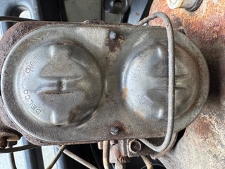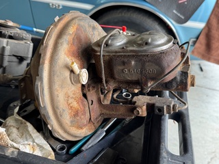 small font 9204 original booster, dated 58, 309 master cylinder dated 45 w/US stamp, all the original valves, original mounting brackets, original bolts & master cylinder cover. has some mild arizona rust and lots of dust from sitting nothing removed or molested.....great assembly to restore - great dates $1600.00 plus the shipping. Located here in Gilbert, AZ Having issue loading files, may be too big....stay tuned