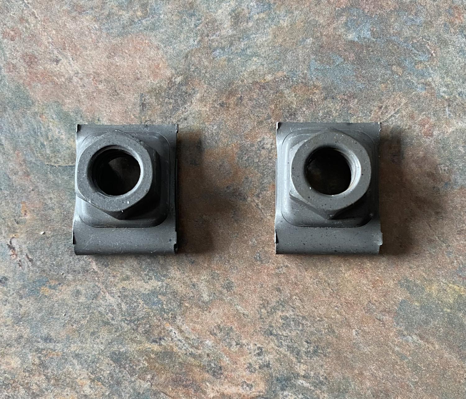 Original pair of GM #3841008 J Nuts. These slid onto the subframe. Also fit 60’s Chevelles and Impalas. Have been media tumbled and sprayed with cast iron color paint. These were removed from a 67 Camaro 40 years ago. Excellent condition. $50/pr includes shipping. PayPal F and F. Jim