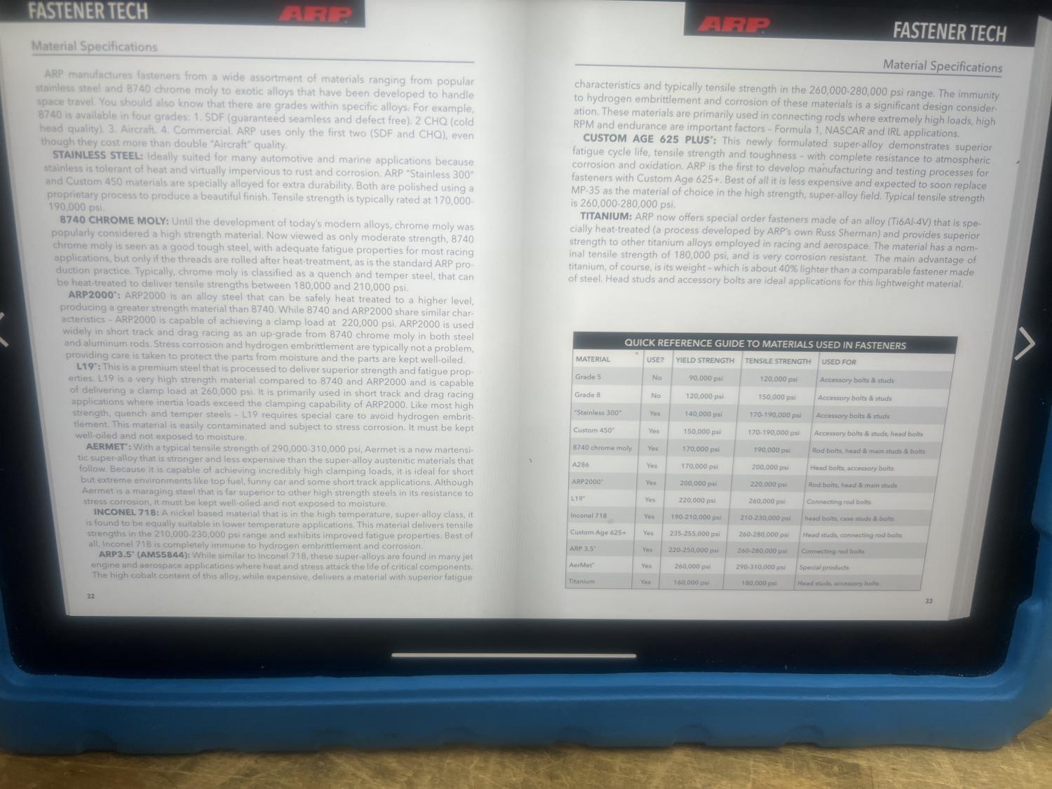 ARP has a Stainless 300 material for fasteners. Its tensile & yield is slightly weaker than CM but still higher than a Grade 8 bolt.