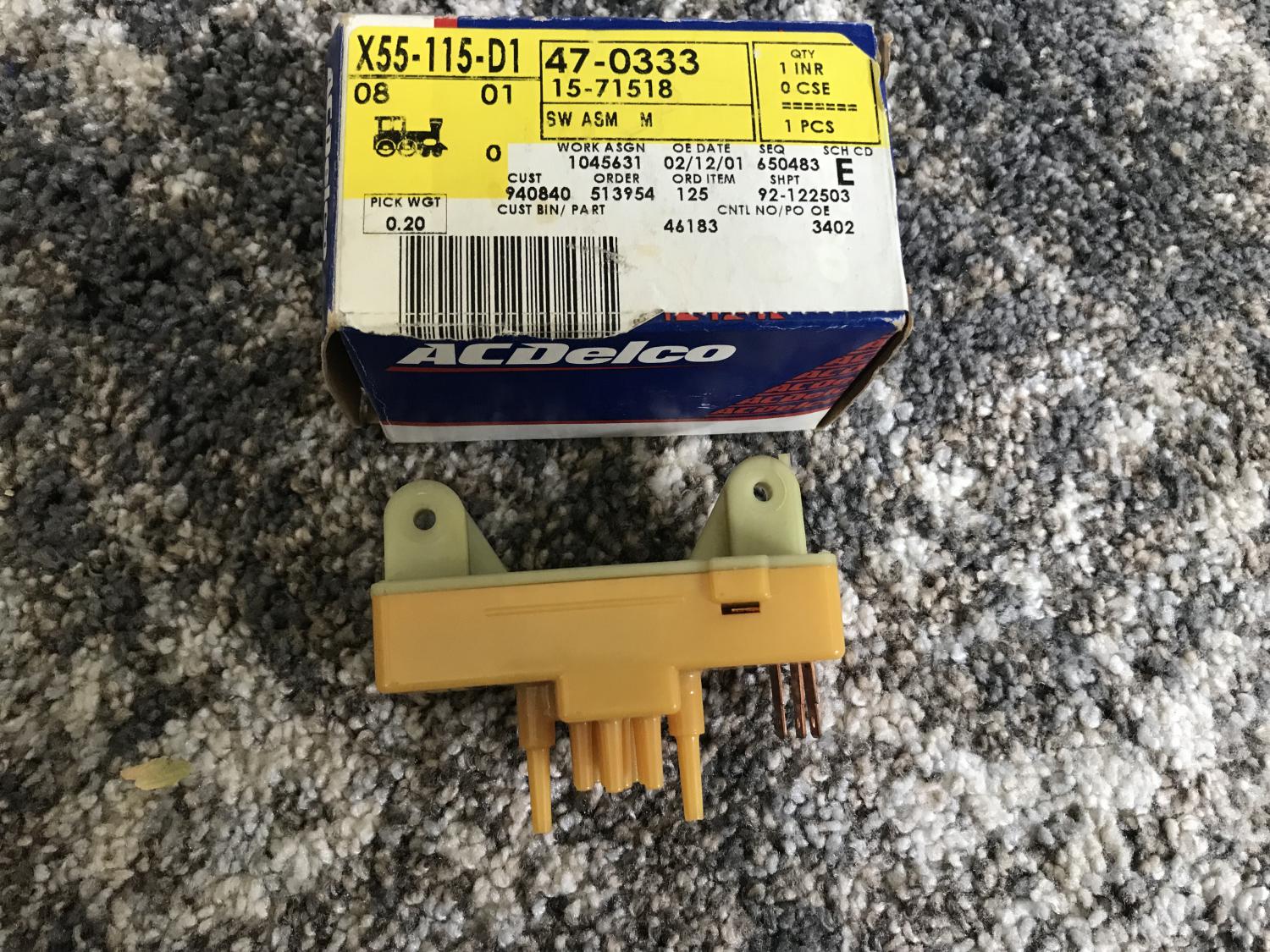 nOS, HVAC switch. Turns out Firebird is diff, got stuck w/ this, reconditioned ones are pricy, here’s a new one in the box, $100 plus ship