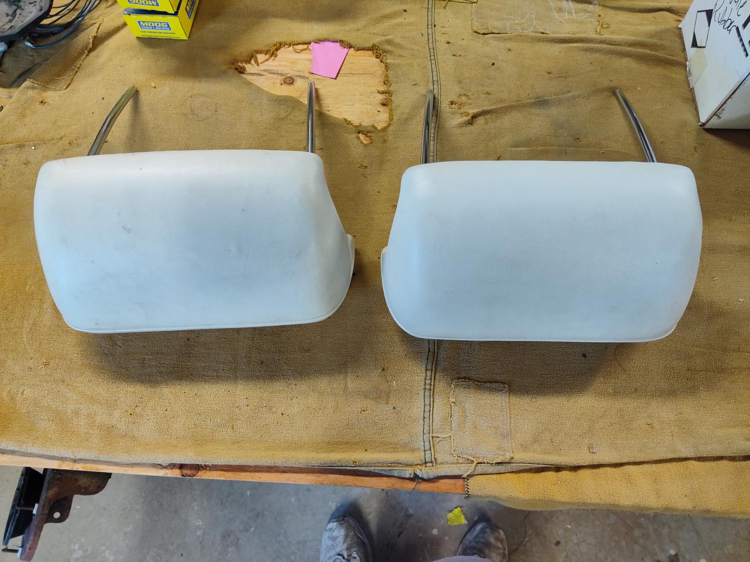 Perfect condition, bought otc in the early 80s, and intended for a '69 parchment interior, but are the "white pearl" color, a '70 color. I can't find any date codes on them, just judging on the color alone. Never installed, been in storage for 40 years.