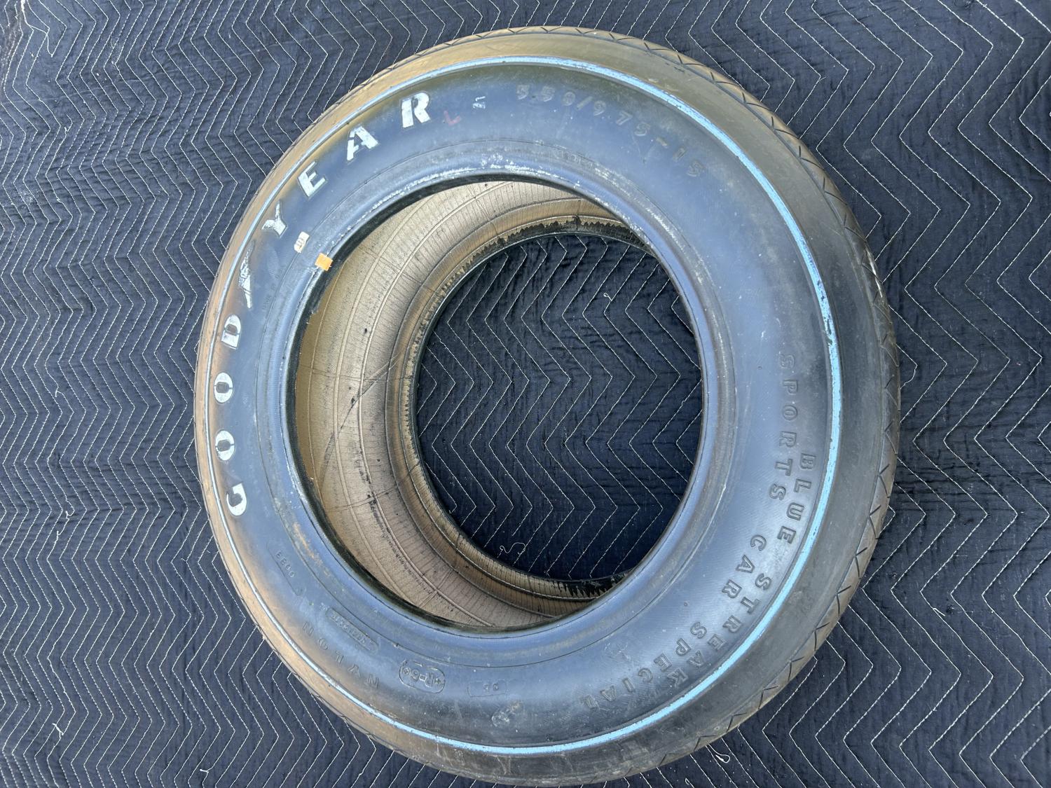 Beautiful unused 1960s vintage Blue Streak tire in the desirable 5.50/9.75-15 size. Very hard to find though I’m recommending it be used as garage art or static display due to age. Tough to find NOS; looking for $600 plus the ride or a good offer.
