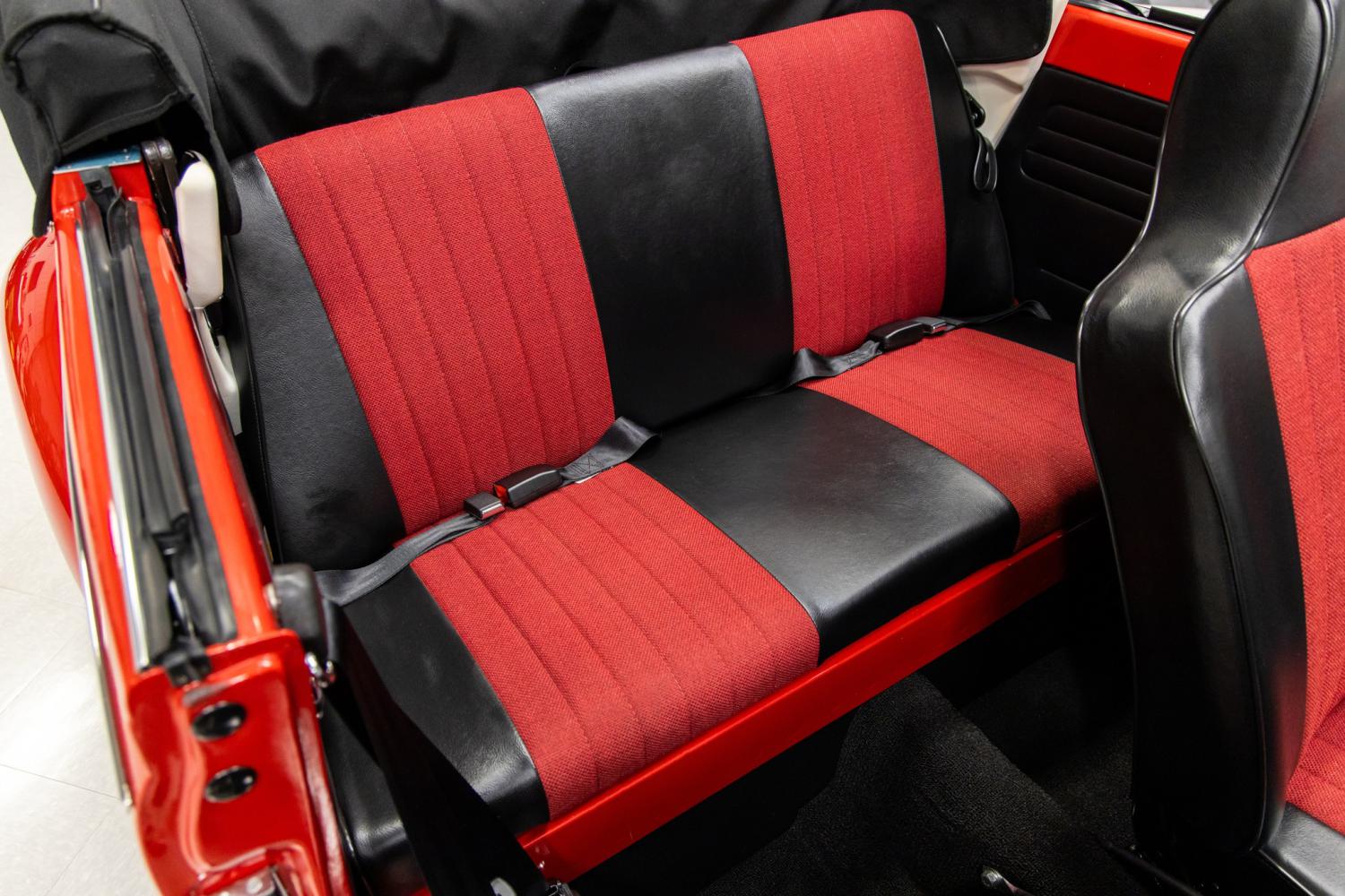 The exterior presents extremely nice and the color combination is eye-catching. During the refurbishment process the body was stripped to bare metal, prepped, primed and repainted. The body is straight and has nice panel fitment throughout. It was refinished in the beautiful shade of Red which dresses it well. The paint was recently detailed to a brilliant finish by the team at MS CLASSIC CARS. It was outfitted with a new black canvas soft top that fits like a glove. A matching convertible top cover is included. Everything on the exterior was restored or replaced new including the glass, wiper arms, antenna, mirrors, parking lights, headlights, trunk handle, front bumper, door handles, body moldings, running boards taillights and rear bumper. It rolls on chrome 15” wheels with VW logo hubcaps and are mounted with 165/80 Nankang CX-668 tires.