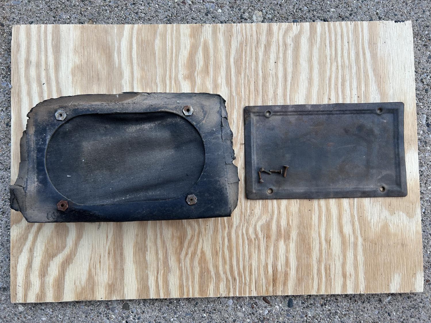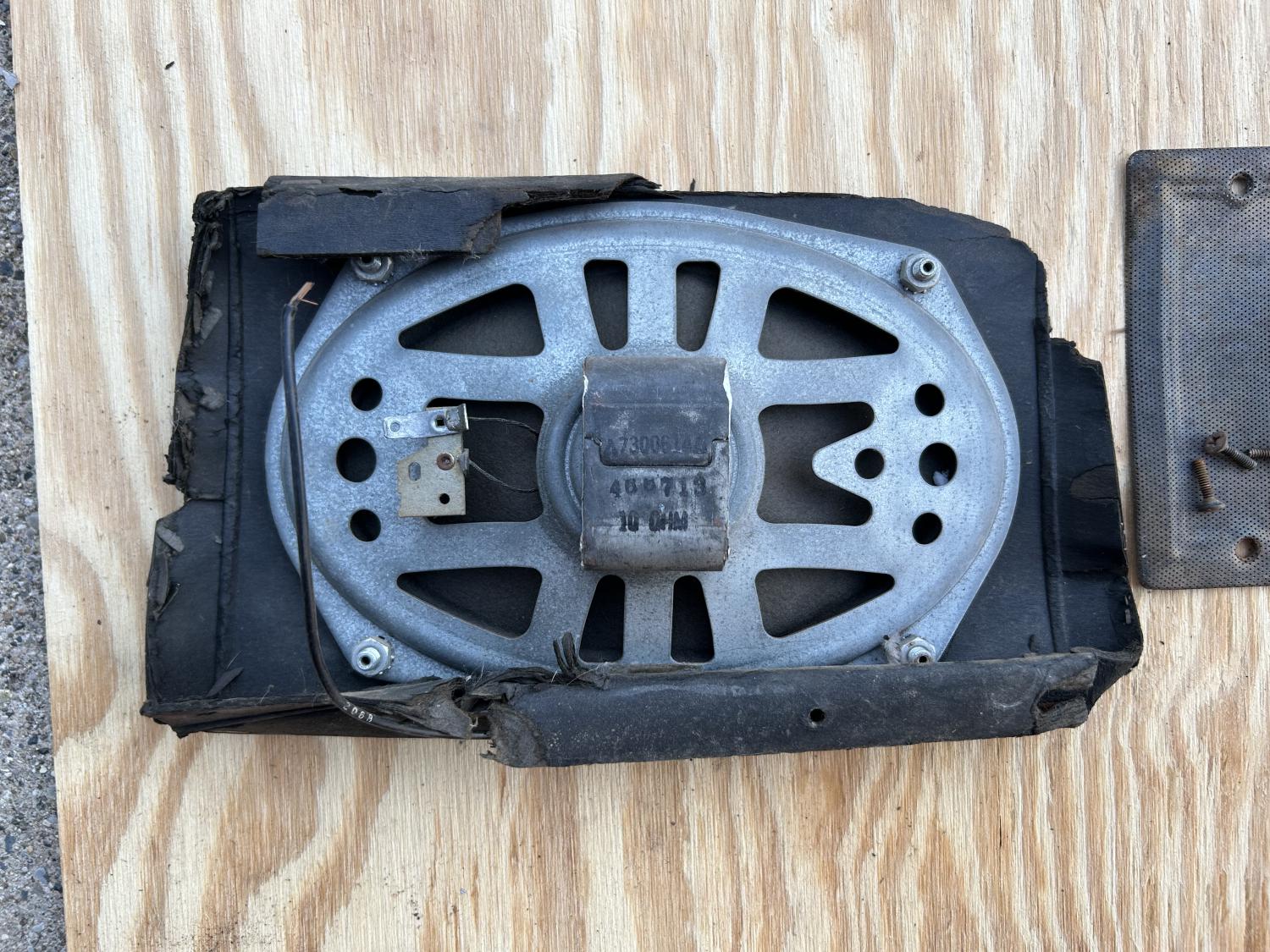 Rare stuff, pulled from a 67 Camaro convertible in Tucson, has the correct and interesting hardware required to install the rear speaker in a first gen F body convertible. Speaker is the correct 7300614 part number, actually looks pretty nice from the rear so it may not even need reconing. The cardboard housing is in poor shape and fortunately that piece is reproduced. Looking for $400 for the entire assembly.