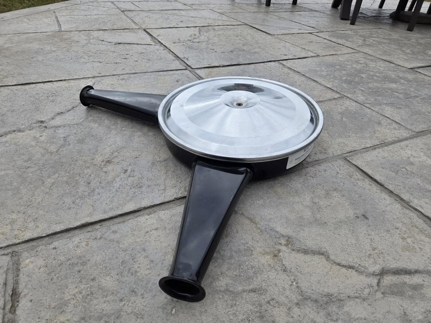 I have a factory original GM 1970 Chevelle 454 LS6 "survivor" dual snorkel air cleaner assembly. This was also used on the 1970 Camaro and Nova 396 L78. This particular unit came off an LS6 within the first few years and has been in dry storage ever since. This still retains its original paint, its original white "CO 6485257" sticker, and has its born with AC A212CW "Best Way" diamond mesh air filter. The 4 dimple flame arrestor is also still present. The flash chrome on the original lid has pitting and imperfections. There is no dents, damage, or repairs anywhere on the dual snorkel air cleaner base. This is as original as you can get. Perfect for any survivor car missing its original air cleaner assembly. $5500. Located in Mullica Hill NJ 08062-4436.