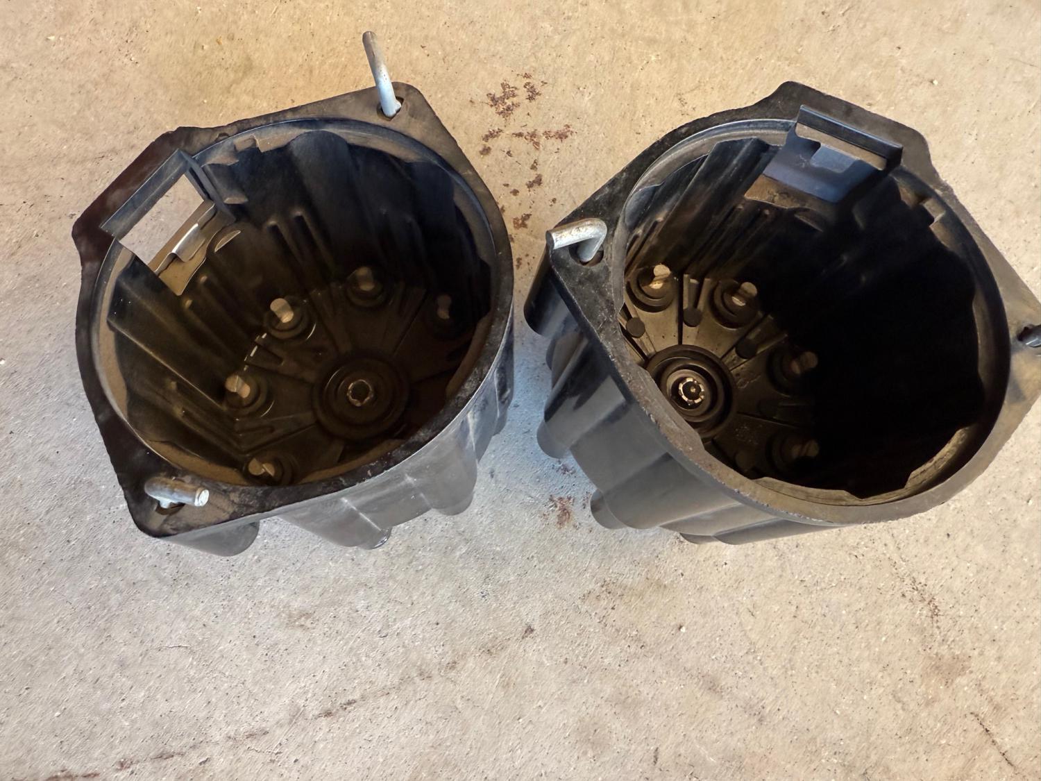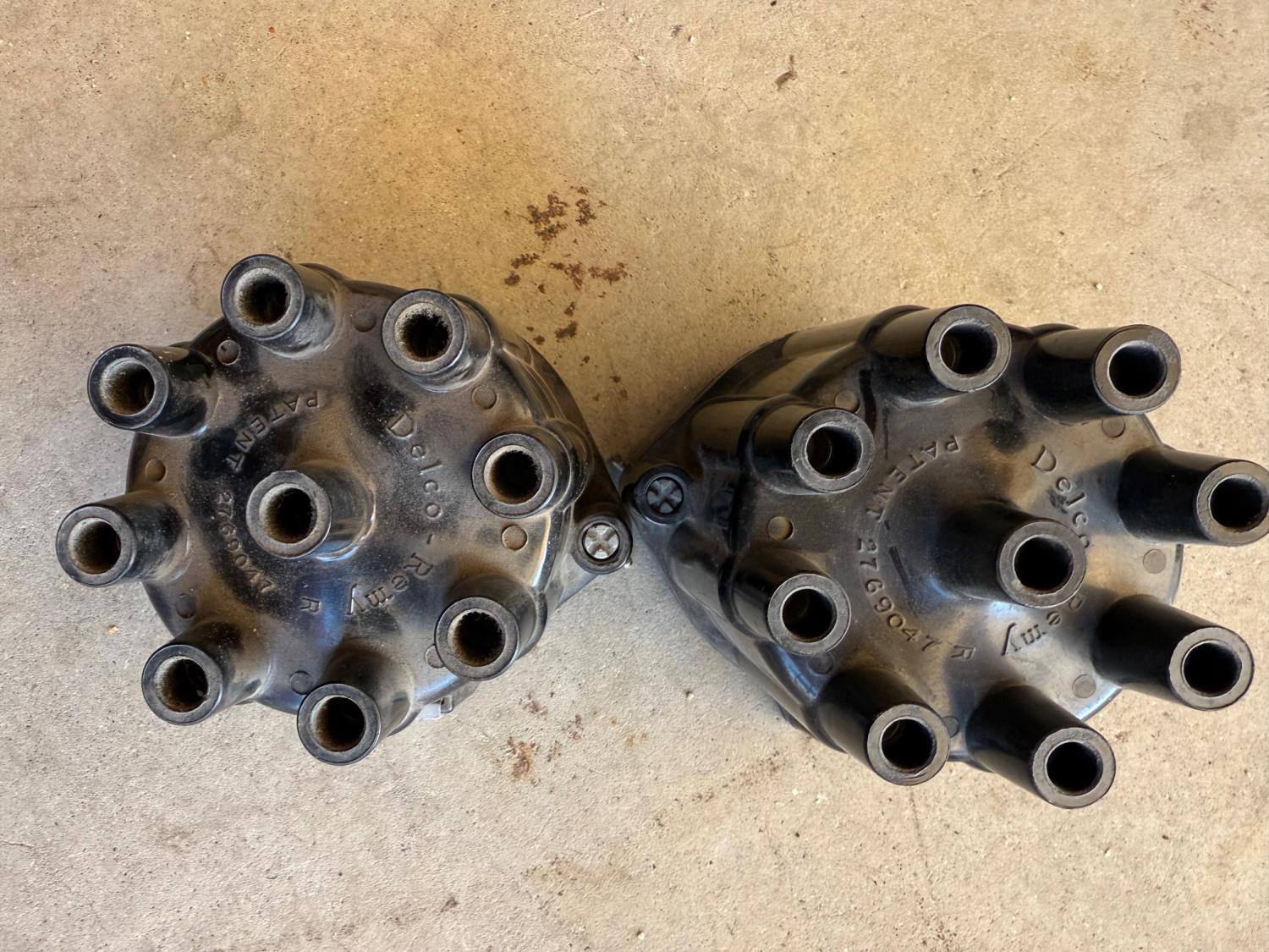 Selling 2 Delco distributor caps with the points window. They have the Delco Remy patent and the R on them. New never used. Price is 65 bucks for the pair ppff shipped lower 48 USA. Larry