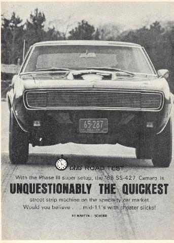 Congrats to you. I have some magazines that I bought to find articles on my '68 BM Camaro and some of them are on the '67's, I'll bring the magazines to the Reunion and you can see if one of them might be yours. I found my '68 BM in one of the magazines. Can't wait to see it. Take Care, Mark [img]/ubbthreads/images/icons/grin.gif[/img] |