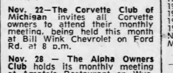 I am hoping someone can give me more information about Bill Wink Chevrolet in Detroit (?), Michigan. My Corvette Convertible came from there. Any memorabilia would be great. I have the original Michigan (1966) License plate so a license plate frame would be awesome. Thanks. -Dan