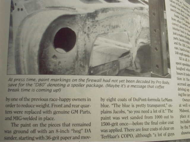 i was looking through some old car mags and i ran across an article on a copo restoration showing some of the original build