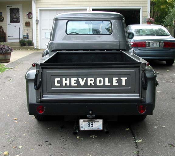 This Truck was Built to Drive. Completed in 2002, Finished in Cadillac Grey Metalic. It was a Very Solid 3100 series Pickup from the last 1/2 of 55. 1975 Camaro Front subframe, Engine (re-built) Braking, Steering and Front suspension. 10 Bolt Posi Rear End, Dual Exhaust. Steel Bed with custom Made Tonneau cover in Hartz Cloth. Cloth and Vinyl Two tone interior (black and grey) Tilt Wheel, All New Wiring, Vintage A/C, Heat Defrost, all NEW Tinted Glass. Vintage Alluminum Slotted Wheels with Black wall Radial tires. Total of 75,000 miles on powertrain with ONLY 4000 since completion. Call or E-mail for more info and Photos. Price $20,000.- firm. see it on my website at http://www.kuhnsklassics.com THANKS.