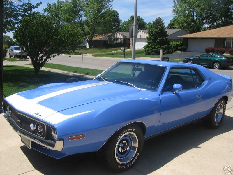 '74 AMX, 401 4-Speed, 3.54:1 traction lock, Maxi Blue (PPG 2 stage), tilt, rear defrost car. Numbers matching, originally from VA & rust free. Shown at the nationals in '02/'03, scored 195/196 for both junior & senior gold. Less than 100 miles on full nut & bolt resto, with all fasteners, latches, etc., replated. Ceramic coated Hooker super comps & am/fm 4 speaker cassette, but have original manifolds & radio. Extremely rare & most likely, none nicer. 27.5k. Email for pics: [email protected]
