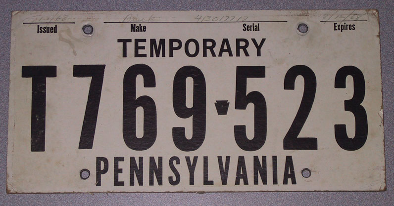 This is a cool original PA paper temp registration tag from 1968. It's in very nice original shape - how many of these survived at all? The vehicle and expiration info has been filled out lightly but you may be able to change it to read "Chevrolet" or whatever you have in mind (it was on a Buick). Cool piece for shows! $50+shipping. Thanks SYC.
