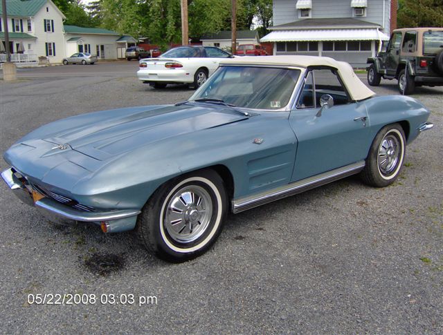 Silver /blue roadster 4 speed,cruise,soft top,327/300 nom car just a driver runs and drives good great frame no rust issues decent paint with some scabs here and there 30k...570-854-0896