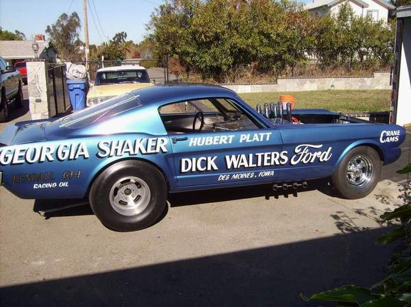This is the only replica in the world of the famous Georgia Shaker that was piloted by Hubert Platt back in the 60’s, a very high-end build using very original parts – the body is a ONE of ONE, no others exist! As the story goes, the original Georgia Shaker is now long gone, destroyed in a crash. This is the ONLY body left, the molds were destroyed. Details below.... 1966 Mustang - "The Georgia Shaker" - All fiberglass body built off original Holman Moody molds. Nose is stretched 12" and the rear is altered as well. - Frame is 2" x 3" Boxed with tube roll cage. Car has all aluminum sheet interior as did the original. - Solid front axle with spindle mounts. 1/4 leaf spring suspension in the front, solid mount in the rear, with original T-Bolt style traction bars, and original wheelie bars. - Holman Moody #3 Engine: 1965 Center Oiler (standard bore), forged 427crank, LeMans rods, 13:1 compression, TRW pistons, Cam is custom HM #3 grind w/.610 lift / 330 duration on 108 lobe center. Weed burner headers, C7AE Tunnel Port Heads, Holman Moody C4HM timing cover, NASCAR-HM oil pan, motor plate, original Ford Blue. Algon Fuel Injection, the car runs on alcahol. Krag Magneto, DSR fuel pump, original Moon 3-gal gas tank. - C6 Trans with shift kit & 10" converter (4,000 stall), B&M Rachet shifter - Ford 9' rear w/4:30's and drum brakes - no parachute - Hand painted lettering - WEIGHT >> 1,700 lbs (with motor), door STILL FUNCTION NOTE: Many of the parts came from 5 original early Ford funny cars (or gasser race cars). This car was built as a tribute to Hubert Platt with his blessing & guidance. It was built as close as you possibly get to the original "match race" Mustangs, including an original fiberglass racing seat and original cam-lock seat belt. PICS >> http://s270.photobucket.com/albums/jj93/...mview=slideshow Asking $49,500 obo the car is located in SoCal Regards, Dave Castine 617.513.7407 [email protected] |
