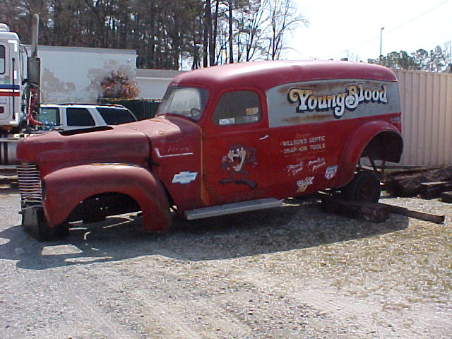 It's a 1947 International Harvester Panel truck that was raced in 1991, 1992, 1993 ( NTPA )